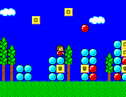 This level is divided into two distinct areas. The first area is a regular sidescrolling level, with lots of blue and red blocks blocking the path which the player has to dig through with punches. Saint Nurari waits at the end of this area, giving Alex Kidd a Peticopter and revealing to Alex that he is a prince from Radaxian.