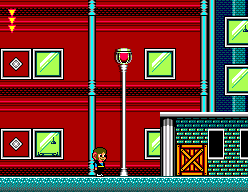 The first area of the level is set on a city. It is a straightforward level with not obstacles and only a few regular enemies. The player can use the lampposts to climb up and use the Fireball technique. The second area is set on a building construction site, where the player must climb up to the top then follow a horizontal path with suspended platforms.